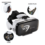 Now virtual reality can be experienced by anyone in style. The Virtual Reality headset includes headphones that plug directly into your smartphone. Now all of your senses are engaged into the virtual reality world! Simply download any "Virtual Reality" App or "3D" App on your smart phone to begin your virtual reality experience. The padded headset allows you to experience virtual reality in comfort. The adjustable head strap makes it “one size fits all”. The Virtual Reality headset fits all 4-6.5” phones, this includes the iPhone 7 & 7 plus, HTC One, and Nexus 6. Please note that your case may need to be removed.
