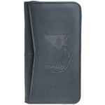 Fully featured travel wallet that has an exterior pocket for boarding passes or other documents. Packed with a coin pocket, ID holder, quick access passport pocket, five card slots, pen/stylus loop, and two large pockets for receipts or other items that every traveler needs. The zippered closure ensures that your valuables are kept safely inside.