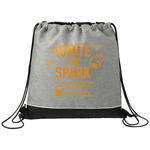 The Stone Drawstring Bag features an open main compartment with rope cinch closure.