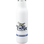 The Marka Copper Vacuum Insulated Bottle features durable, double-wall stainless steel vacuum construction with copper insulation, which allows your beverage to stay cold for 48 hours and hot for at least 12 hours. The construction also prevents condensation on the outside of the bottle. Comes complete with the on-trend, durable, smooth-touching powder coated appearance and a screw-on, spill resistant lid and a durable, zinc-alloy hand loop. Fits most standard car cup holders. Leed's exclusive. 20oz. Navy Pinstripe Pattern