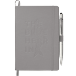 Set includes 2800-61 5.5" x 8.5" Trento Hard Bound JournalBook and 1066-45 Athens Ballpoint Stylus. Ultra smooth PU, hard cover journal. Color matching elastic closure, pen loop and ribbon page marker.. 80 sheets of cream lined pages.