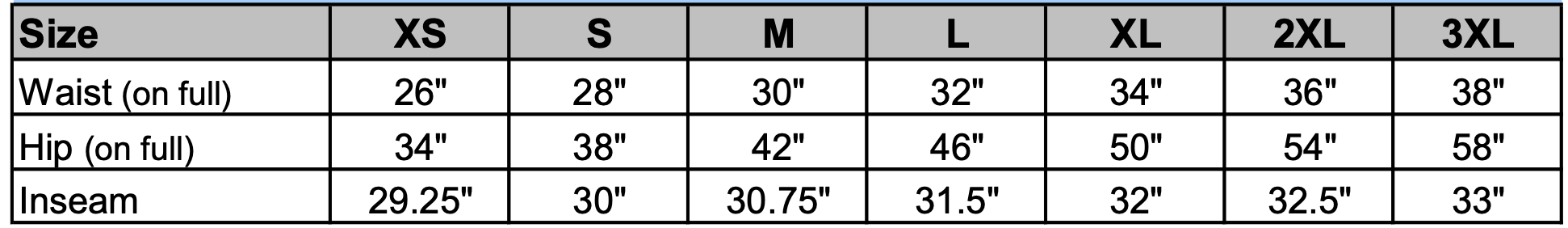 • 1/2" cotton braided drawcord on outside waistband (inside drawcord on sizes XS-S)